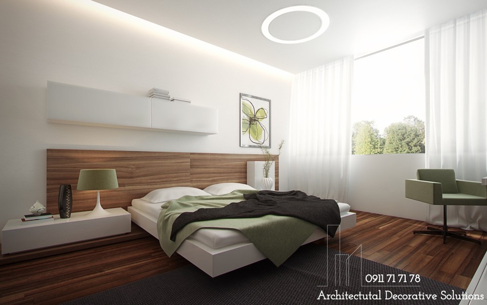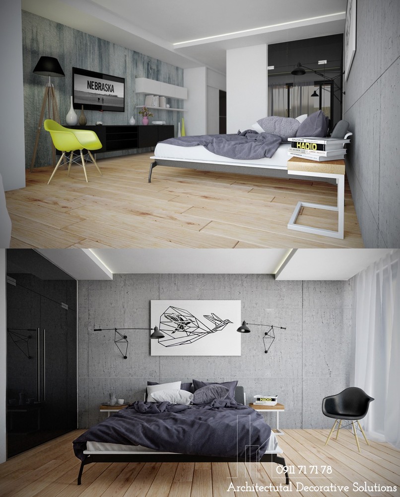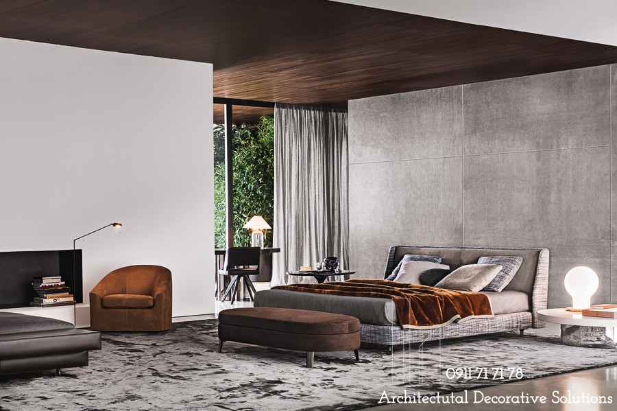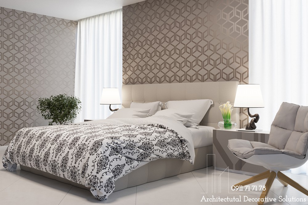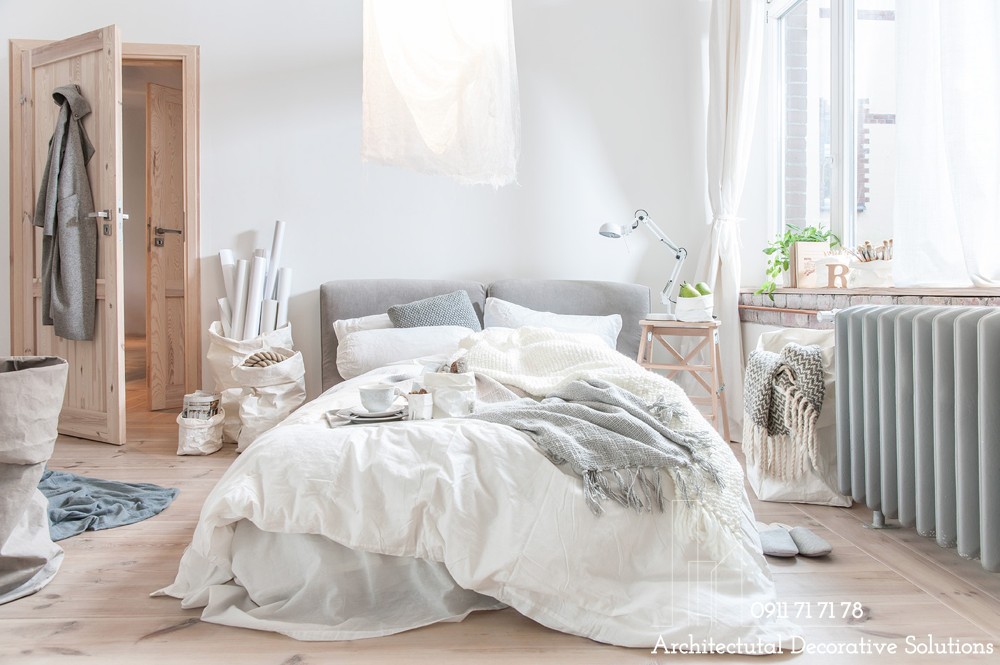 Một mẫu phòng ngủ nữa dành tặng những người yêu thích sự dịu nhẹ, trung tính. Thiết kế phòng ngủ này kết hợp sử dụng thêm kết cấu mềm mại massage cho chủ nhân từ những bước chân cho đến mọi giác quan.