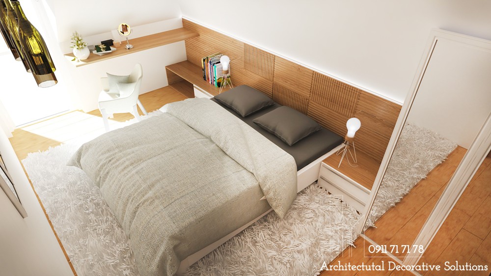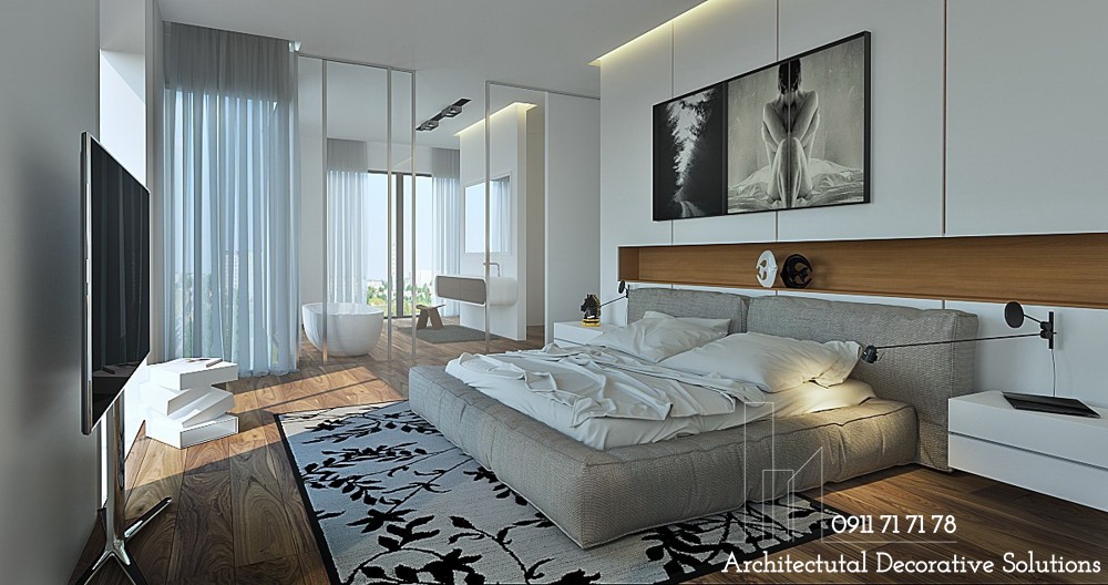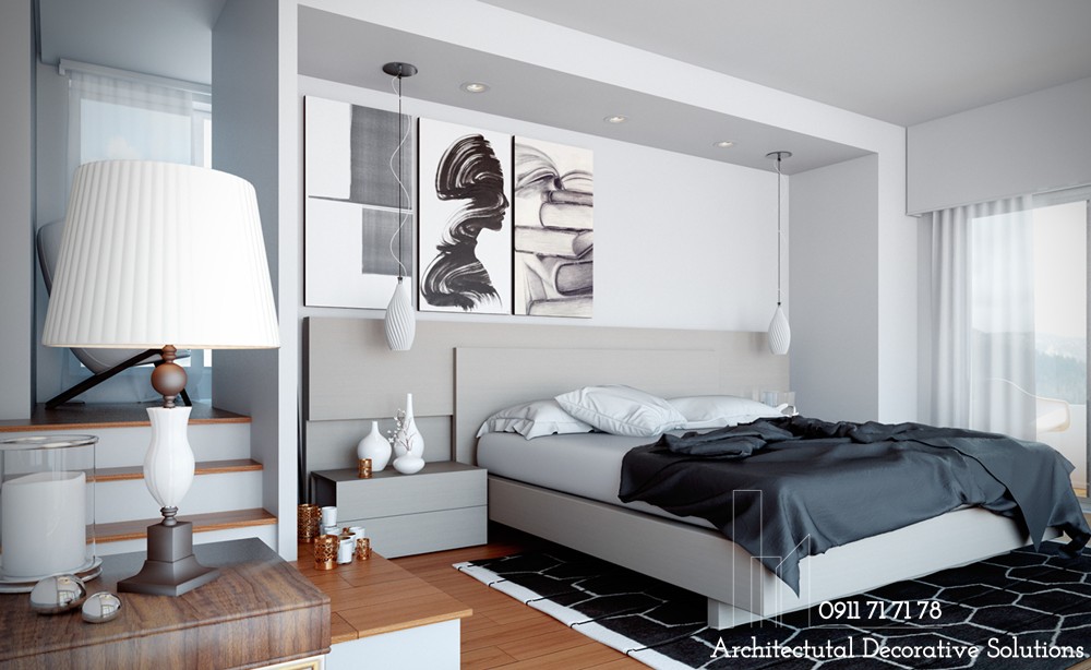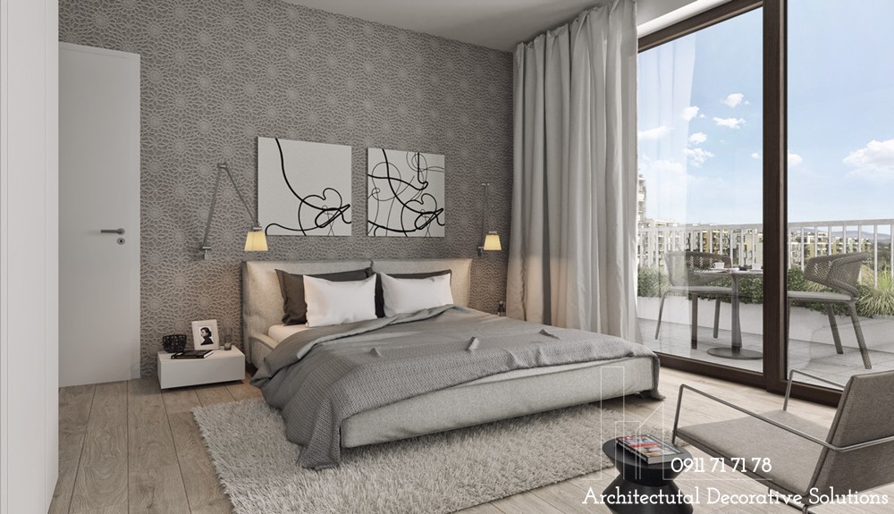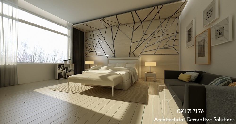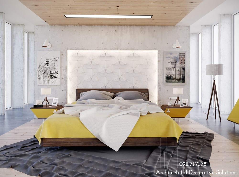 Một mẫu phòng ngủ nữa dành tặng những người yêu thích sự dịu nhẹ, trung tính. Thiết kế phòng ngủ này kết hợp sử dụng thêm kết cấu mềm mại massage cho chủ nhân từ những bước chân cho đến mọi giác quan.