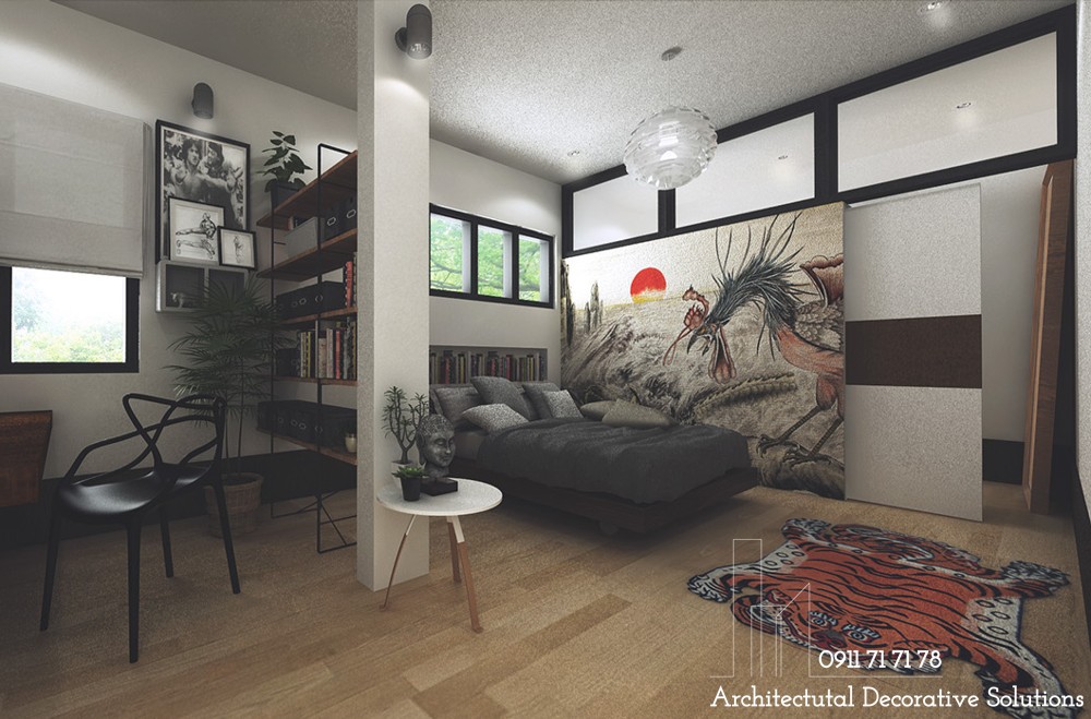 Một kệ sách trong phòng ngủ này là tài sản vô giá của chủ nhân. Vừa vuốt ve thú vui tao nhã, vừa làm nền tảng đón bạn vào giấc ngủ thật dễ chịu.