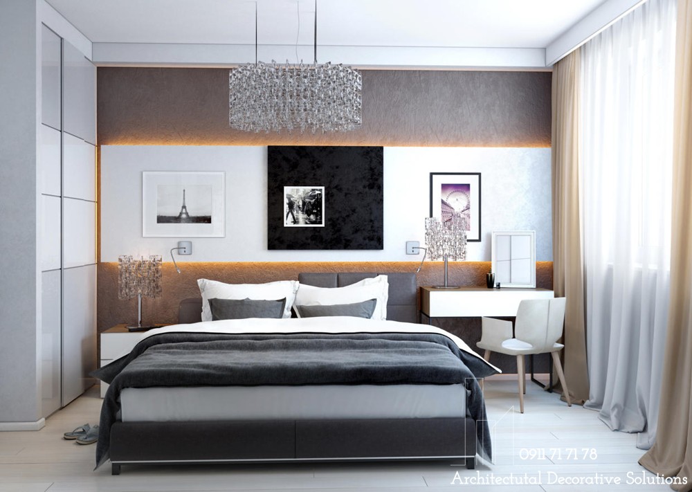 Bóng mượt, mát mẻ và hiện đại sang trọng tràn ngập không gian phòng ngủ này để đưa bạn vào giấc ngủ ngon và sâu.