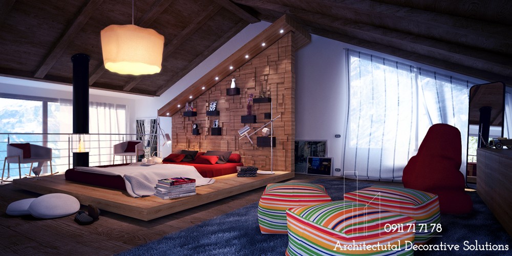 Các bức tường trong phòng ngủ của kết cấu này cung cấp cho nó một sự ấm áp hoàn hảo. Trong khi đó, sàn nhà và những vật dụng trang trí mang đến một cánh đồng hoang đầy yên bình và thư thái.
