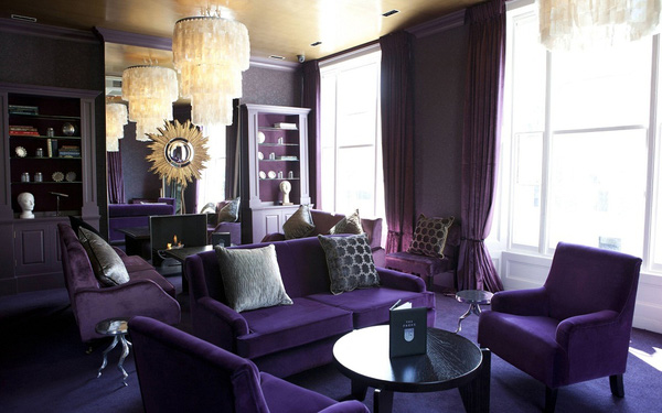 Phòng khách màu tím tạo cảm giác vương giả, sung túc.