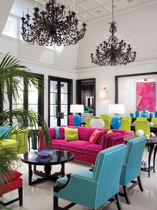 Màu sắc là một thành tố quan trọng quyết định tính thẩm mỹ của phòng khách. Tuy vậy, trong mọi trường hợp đều có ngoại lệ. Đừng quá cứng nhắc khi thiết kế căn phòng này. Một màu sắc tưởng chừng không-liên-quan lại có thể là điểm nhấn hữu ích trong phòng khách.