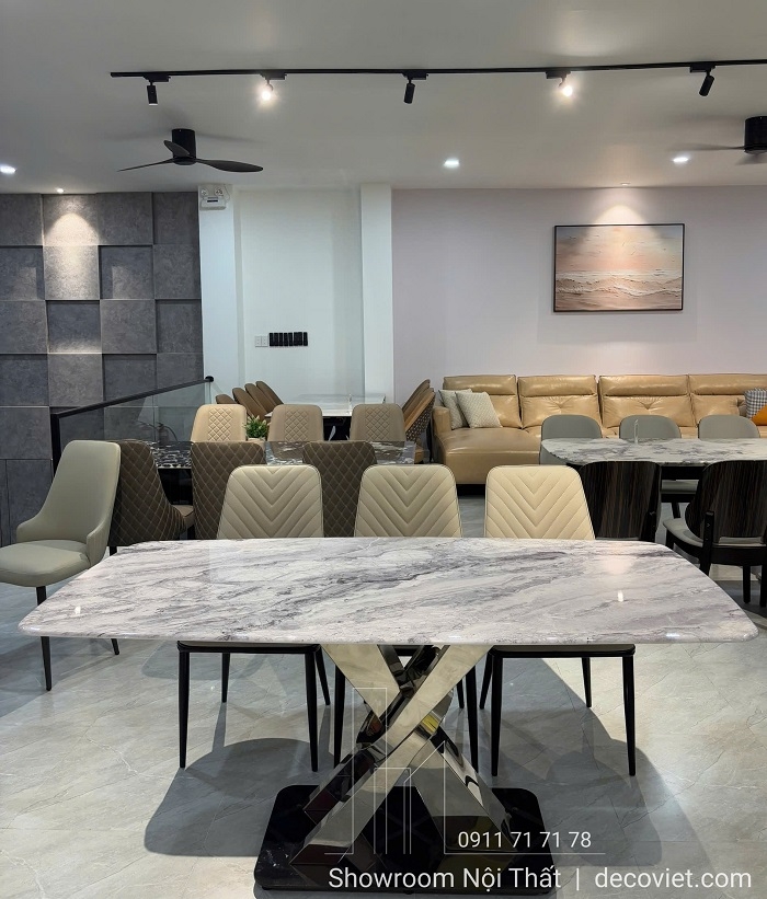 Khi phong cách sống hiện đại không chỉ dừng lại ở tiện nghi mà còn cần sự thẩm mỹ tinh tế, Bàn Ăn 6 Ghế Cao Cấp Chân Inox 2724S chính là lựa chọn hoàn hảo để nâng tầm không gian phòng ăn. Với thiết kế ấn tượng từ mặt đá cẩm thạch tự nhiên sắc sảo đến chân bàn inox tạo hình chữ X xoắn nút độc đáo, mẫu bàn ăn 6 ghế hiện đại không chỉ thu hút ánh nhìn mà còn khẳng định gu nội thất đẳng cấp của gia chủ. Phù hợp với nhiều không gian từ căn hộ cao cấp, nhà phố hiện đại đến biệt thự sang trọng, bàn ăn mặt đá là điểm giao thoa hoàn hảo giữa thẩm mỹ và công năng.