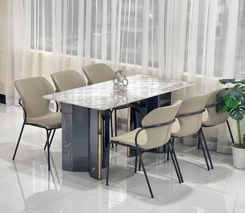 Bộ bàn ăn 6 ghế mặt đá sở hữu thiết kế sang trọng, đẳng cấp sẽ mang đến cho không gian phòng bếp của bạn sự ấn tượng và đầy cuốn hút. Bàn Ăn 6 Ghế Hiện Đại 2543S là một lựa chọn sang trọng và bền bỉ cho không gian ăn uống của gia đình hoặc nhà hàng cao cấp. Bàn ăn mặt đá hiện đại còn giúp tạo nên vẻ đẹp đỉnh cao và tăng tính thẩm mỹ cho tổng thể ngôi nhà. Nếu bạn đang tìm kiếm một sản phẩm bàn ghế ăn mang đầy đủ sự hoàn hảo cho phòng ăn của gia đình mình, thì bộ bàn ăn 6 ghế hiện đại dưới đây chắc chắn sẽ là một sự lựa chọn đúng đắn.