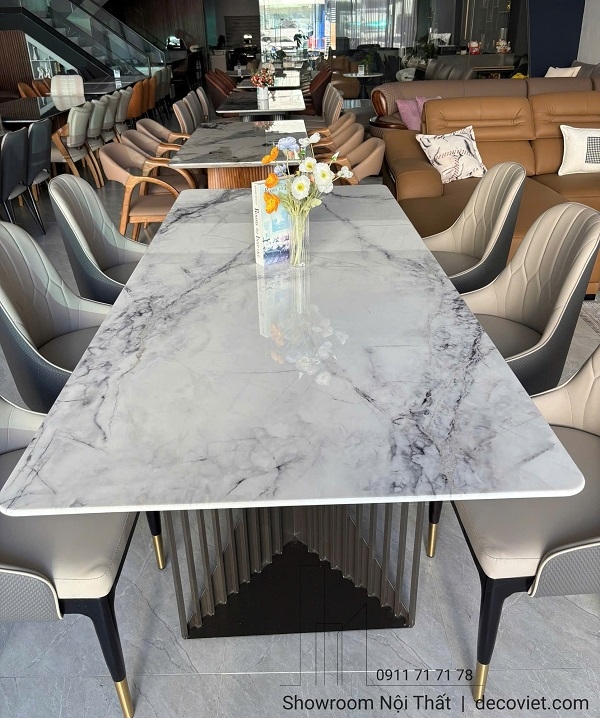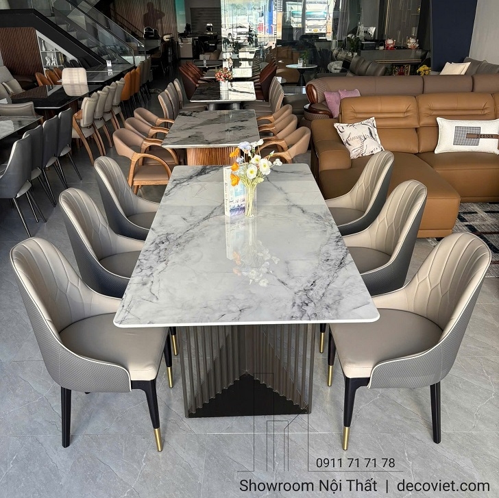 Bộ bàn ăn 6 ghế mặt đá cao cấp hiện đang được trưng bày tại Showroom Nội Thất DecoViet. Trước khi giới thiệu đến khách hàng, sản phẩm đã được đánh giá kỹ về thiết kế, độ bền và tính ứng dụng thực tế nhằm đảm bảo phù hợp với nhiều kiểu không gian sống khác nhau.