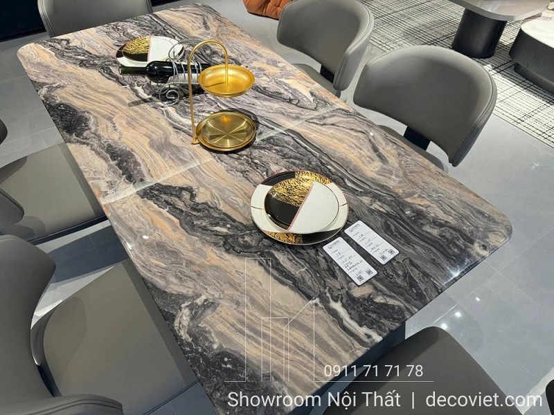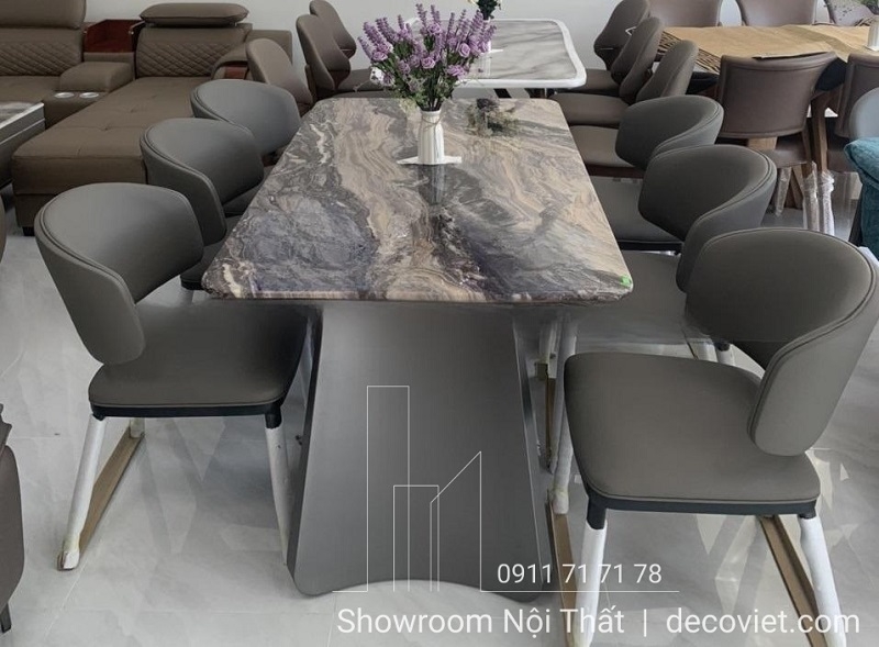 Bàn ghế ăn không chỉ phục vụ nhu cầu sinh hoạt hàng ngày mà còn góp phần định hình đẳng cấp của không gian sống. Bàn Ăn 6 Ghế Mặt Đá Hiện Đại 2620S với thiết kế hiện đại là lựa chọn hoàn hảo cho những căn bếp căn hộ hoặc nhà phố cao cấp. Sở hữu thiết kế sang trọng, mặt đá cẩm thạch tự nhiên kết hợp cùng 6 ghế bọc da cao cấp, bộ bàn ăn này toát lên vẻ đẹp sang trọng chuẩn phong cách luxury. Mỗi chi tiết đều được hoàn thiện chỉn chu, thể hiện sự tinh tế trong từng đường nét – một điểm nhấn "đắt giá" cho không gian sống đẳng cấp của gia chủ.