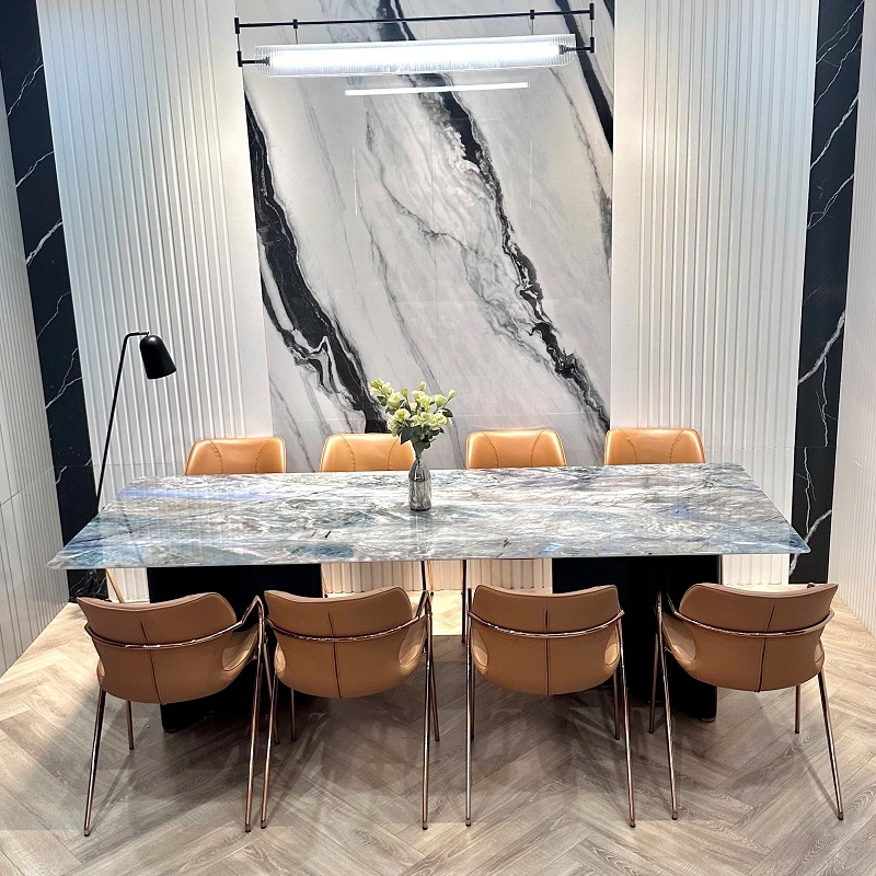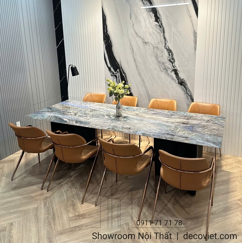 Bàn ghế ăn không chỉ phục vụ nhu cầu sinh hoạt hàng ngày mà còn góp phần định hình đẳng cấp của không gian sống. Bàn Ăn 8 Ghế Nhập Khẩu Hiện Đại 2609S với chiều dài 2.6m là lựa chọn hoàn hảo cho những căn bếp rộng, biệt thự hoặc nhà phố cao cấp. Sở hữu thiết kế hiện đại, mặt đá cẩm thạch tự nhiên kết hợp cùng 8 ghế bọc da cao cấp, bộ bàn ăn này toát lên vẻ đẹp sang trọng chuẩn phong cách luxury. Mỗi chi tiết đều được hoàn thiện chỉn chu, thể hiện sự tinh tế trong từng đường nét – một điểm nhấn "đắt giá" cho không gian sống đẳng cấp của gia chủ.
