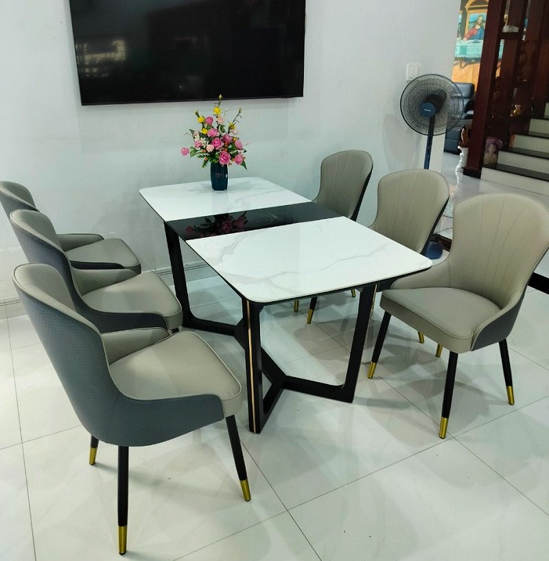 Bộ bàn ăn thông minh sử dụng 2 chất liệu được ưu chuộng hiện nay là chân gỗ và mặt đá cao cấp. Phần chân bàn ăn kéo dài nhập khẩu bằng gỗ sơn chắc chắn và thiết kế đẹp mắt, cùng với mặt đá bằng chất liệu đá sang trọng tinh tế chắc chắn sẽ làm hài lòng khách hàng.