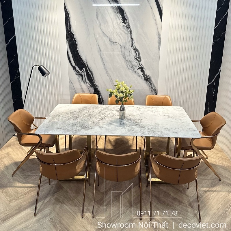 Bàn Ăn Cao Cấp 8 Ghế Chân Inox 2725S