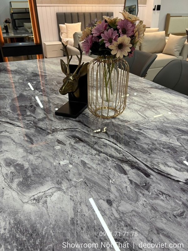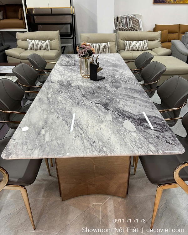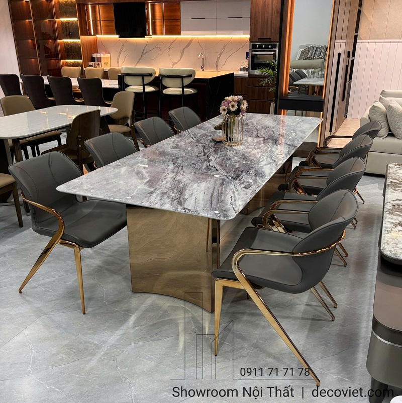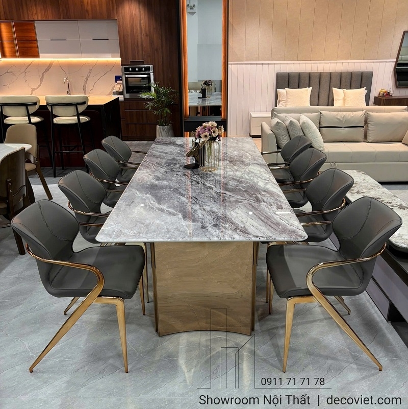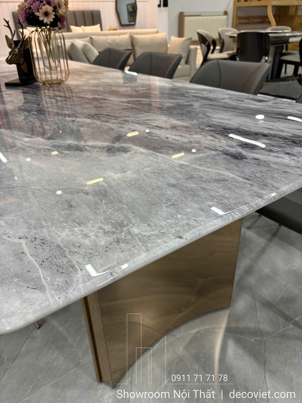 Bộ bàn ăn 8 ghế mặt đá cao cấp vân xám sang trọng, cuốn hút