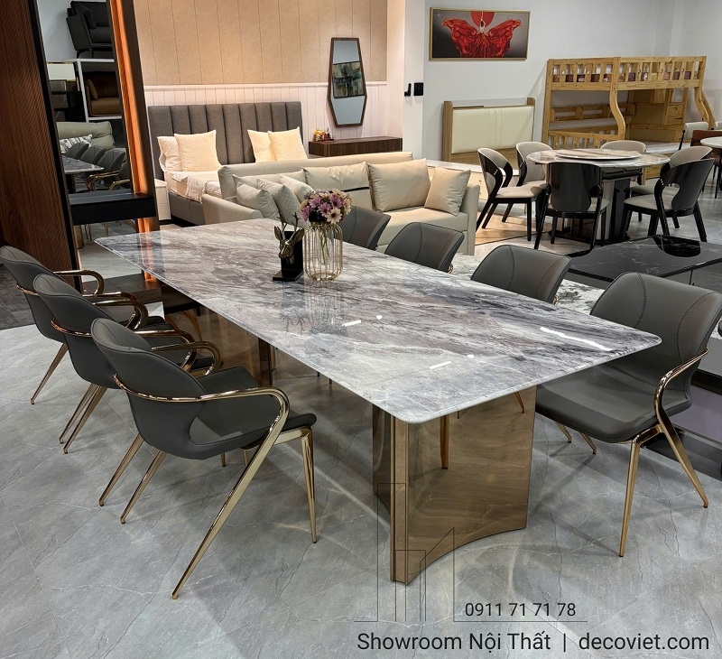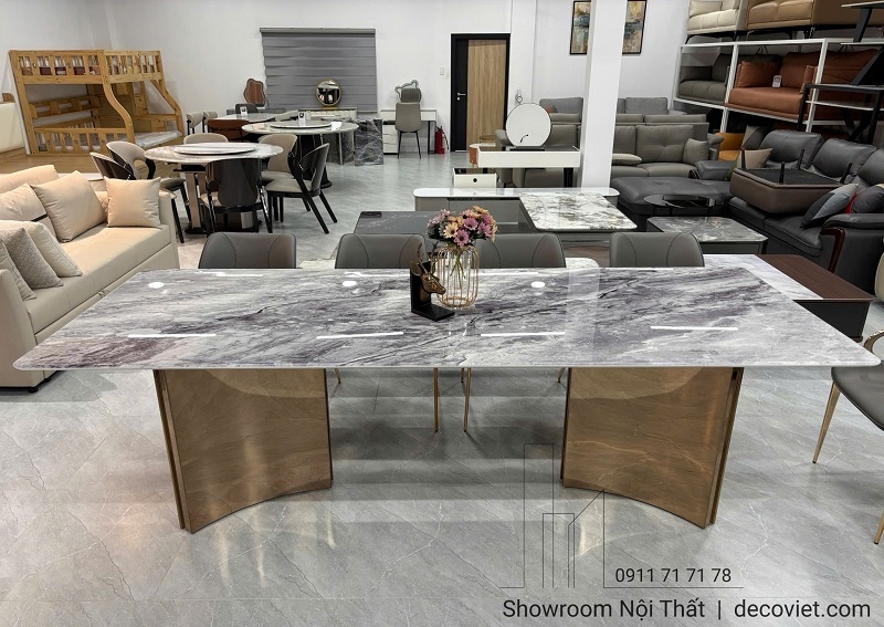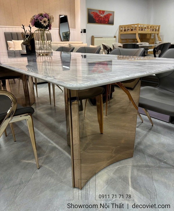 Thiết kế Bàn Ăn Chân Inox Mặt Đá 2885S sở hữu form bàn dài, mặt bàn rộng giúp bố trí chỗ ngồi thoải mái cho gia đình đông người hoặc các buổi tiệc, tiếp khách. Kiểu dáng cân đối, tỷ lệ hài hòa giúp bộ bàn ăn phù hợp với phòng bếp lớn, biệt thự hoặc không gian bếp – phòng ăn liên thông. Tổng thể bàn ăn 8 ghế đẹp tạo cảm giác bề thế nhưng vẫn giữ được sự tinh tế, không nặng nề cho không gian.
