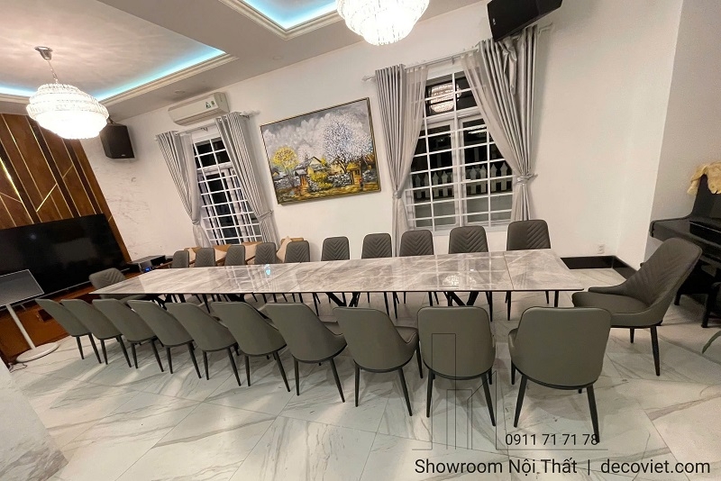 Khi không gian phòng ăn rộng rãi, một chiếc bàn ăn vừa sang trọng vừa tiện dụng là điều không thể thiếu. Bàn Ăn Dài 5m2 Mặt Đá 22 Ghế 2794S chính là giải pháp hoàn hảo cho đại gia đình, biệt thự hay các phòng tiệc sang trọng, nơi mà sự tiện nghi, thẩm mỹ và khả năng phục vụ nhiều người cùng lúc luôn được đặt lên hàng đầu. Bộ bàn được thiết kế thông minh, ghép từ hai chiếc bàn kéo dài, tạo thành tổng thể rộng rãi, ấn tượng và vô cùng đẳng cấp khi đặt trong không gian ăn uống. Với chiều dài 5m2 và tổng cộng 22 ghế, bộ bàn giúp cả gia đình dễ dàng quây quần, trò chuyện và tận hưởng những bữa ăn sum họp, tiệc tùng hay tiếp khách quan trọng một cách thoải mái, đồng thời vẫn giữ được sự tinh tế, gọn gàng cho không gian.