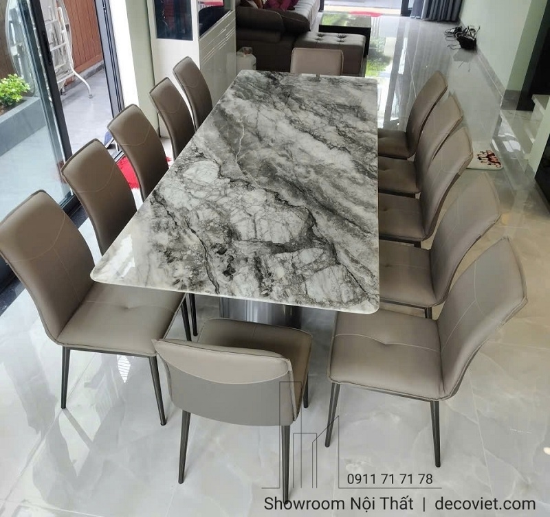 Một phòng ăn đẹp luôn bắt đầu từ một chiếc bàn ăn mặt đá đủ tầm và đúng phong cách. Ở những không gian đề cao sự bề thế và tinh tế, Bàn Ăn Mặt Đá 2m6 Cao Cấp 2827S trở thành lựa chọn thể hiện rõ gu thẩm mỹ của gia chủ. Với thiết kế rộng rãi cùng bề mặt đá mang vẻ đẹp độc bản, bàn ăn mặt đá tự nhiên tạo nên điểm nhấn sang trọng. Từng chi tiết được hoàn thiện tỉ mỉ giúp không gian trở nên đẳng cấp hơn, vừa phục vụ nhu cầu sinh hoạt, vừa nâng tầm phong thái sống theo xu hướng nội thất cao cấp.