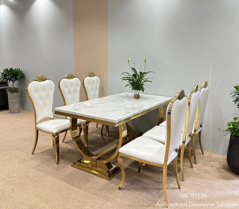 Bàn ăn tân cổ điển mặt đá được đánh giá rất cao về chất lượng, mẫu mã đẹp và sang trọng. Mẫu bàn này thích hợp với không gian phòng khách rộng rãi, làm tôn lên vẻ ấm cúng cho căn nhà. Dù bạn bài trí trong không gian nhà bếp liền kề phòng khách hay nhà bếp riêng biệt cũng đều rất sang trọng, đẳng cấp.