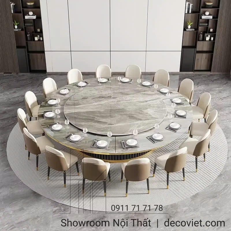 Bàn Ăn Tròn Mặt Đá 16 Ghế 2334S không chỉ là món nội thất tiện nghi mà còn là tâm điểm thẩm mỹ giúp tôn vinh vẻ đẹp của toàn bộ không gian phòng ăn. Từng chi tiết được hoàn thiện tinh xảo mang đến tổng thể hài hòa và đẳng cấp. Bộ bàn ăn tròn xoay 16 ghế còn là biểu tượng của sự sang trọng, ấm cúng và tinh tế, góp phần khẳng định gu thẩm mỹ và phong cách sống hiện đại của gia chủ.