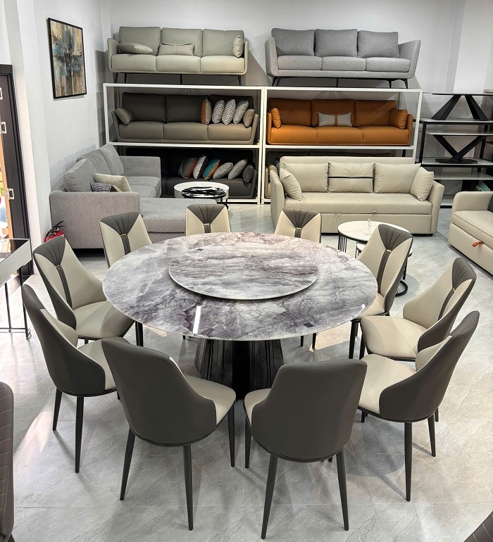 Bạn đang tìm kiếm một bộ bàn ăn đủ đẹp để gây ấn tượng – và đủ tinh tế cho bữa cơm thêm ấm cúng? Hãy khám phá ngay Bàn Ăn Tròn Xoay 10 Ghế Cao Cấp 2664S, là sản phẩm nổi bật trong dòng bàn ăn tròn xoay đẹp bán chạy tại Nhà Decor. Bộ sản phẩm gồm bàn tròn và 10 ghế ăn bọc da êm ái, màu sắc thời thượng, phù hợp với nhiều kiểu không gian như nhà phố, chung cư cao cấp hay biệt thự hiện đại. Không chỉ giúp không gian trở nên sang trọng hơn, mà bộ bàn ăn tròn còn mang đến trải nghiệm sử dụng lâu dài với chất liệu chân inox kết hợp mặt đá tự nhiên bền bỉ, cao cấp.