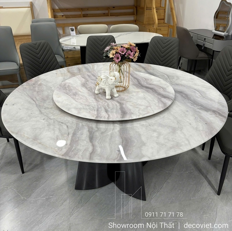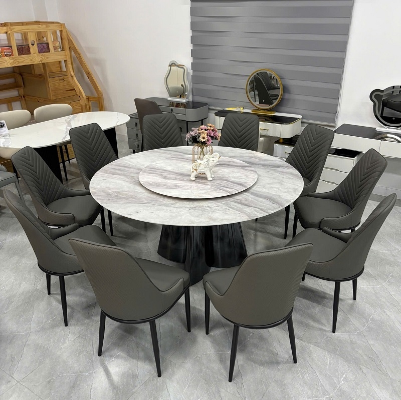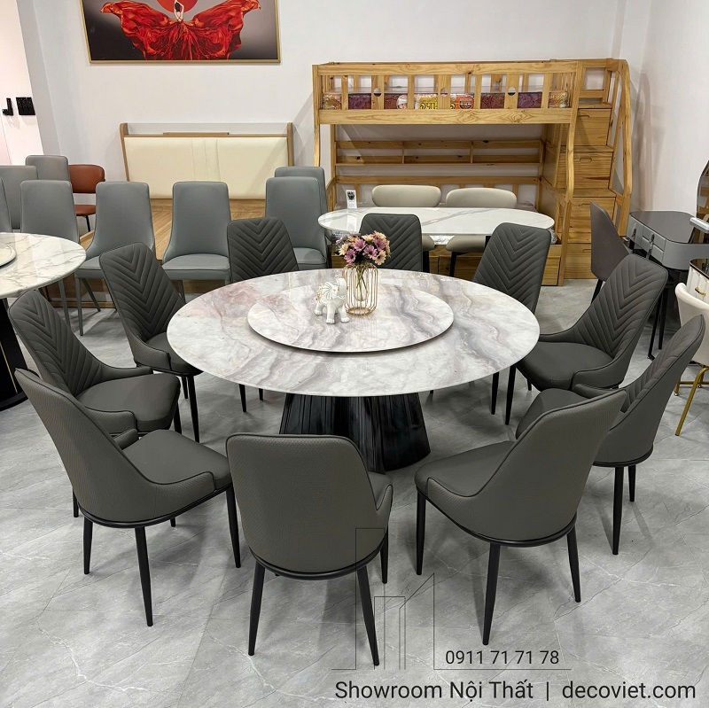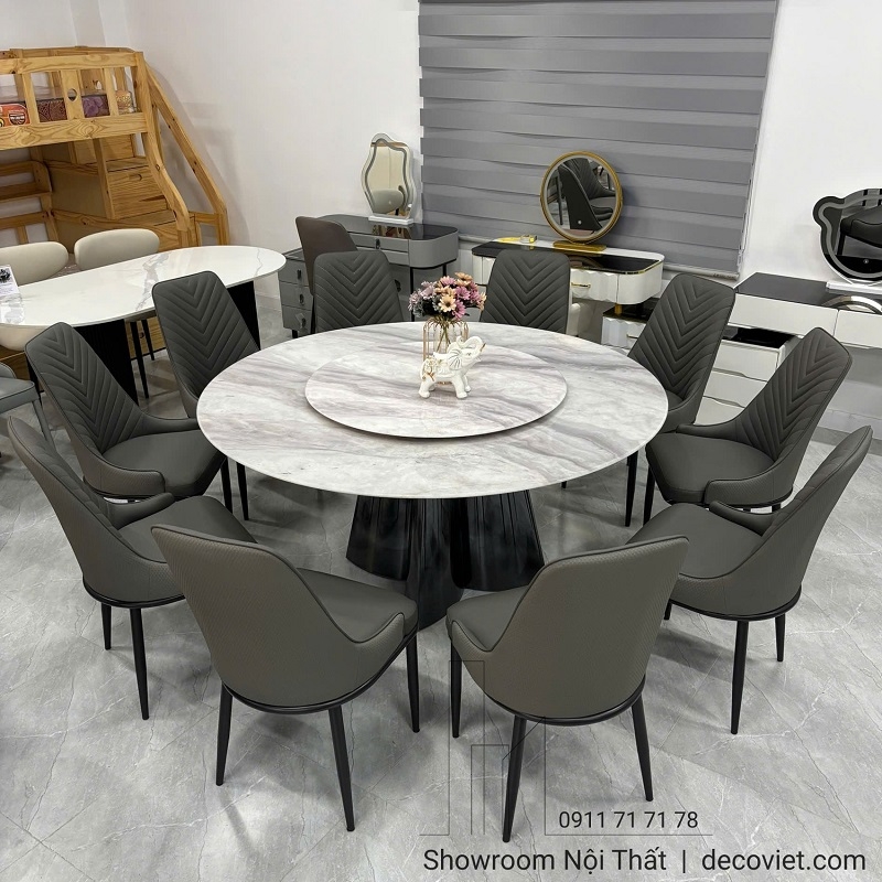 Bàn Ăn Tròn 10 Ghế Mặt Đá 1m6 2895S