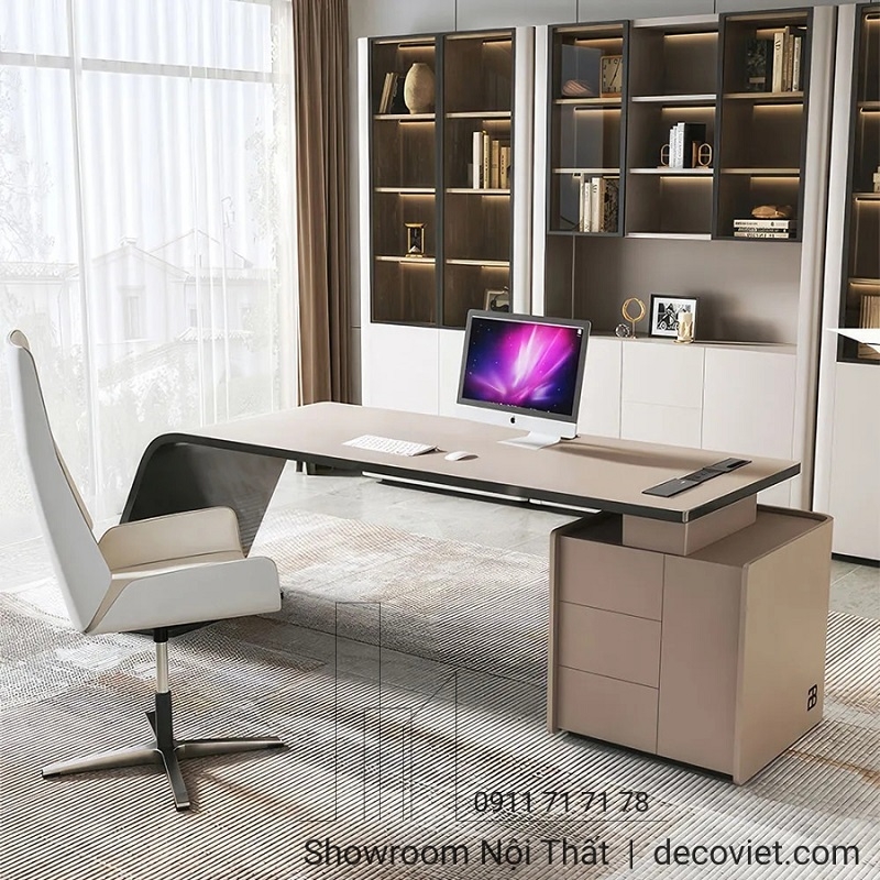 Tone màu trung tính hiện đại, dễ phối cùng tủ hồ sơ, kệ trưng bày hay ghế giám đốc, làm cho không gian làm việc trở nên tinh tế và chuyên nghiệp hơn bao giờ hết. Mỗi góc cạnh, mỗi đường bo được hoàn thiện kỹ lưỡng, tạo cảm giác hài hòa nhưng vẫn bộc lộ sự quyết đoán của người sử dụng.