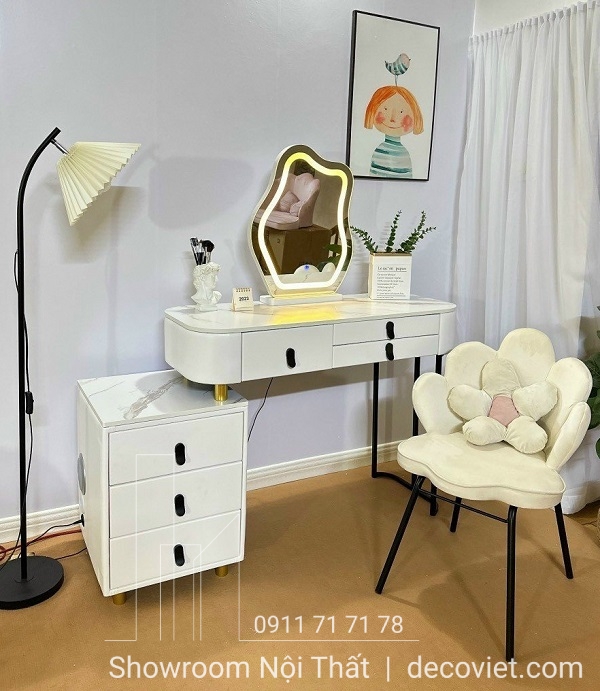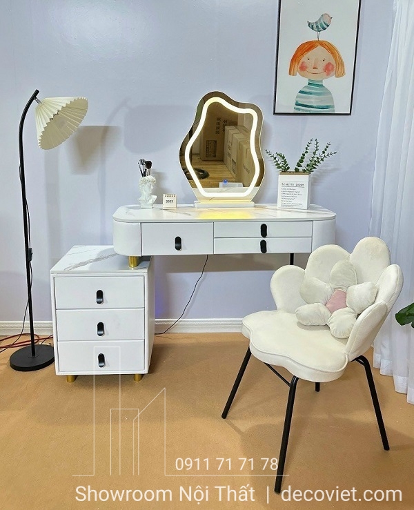Bàn phấn trang điểm không chỉ giúp chị em xinh đẹp hơn mỗi khi ra đường mà còn là một món đồ nội thất trang trí mang giá trị thẩm mỹ cao, góp phần cho phòng ngủ đẹp sang trọng và hiện đại. Dưới đây, Nhà Decor xin giới thiệu đến bạn mẫu Bàn Trang Điểm giá rẻ 81S giúp trang trí cho căn phòng ngủ nhà bạn thêm phần tinh tế và ấn tượng hơn. Thiết kế bàn trang điểm nhập khẩu, bàn trang điểm cao cấp được bổ sung thêm ngăn kéo tiện lợi giúp bạn sắp xếp không gian phòng ngủ ngăn nắp và gọn gàng.