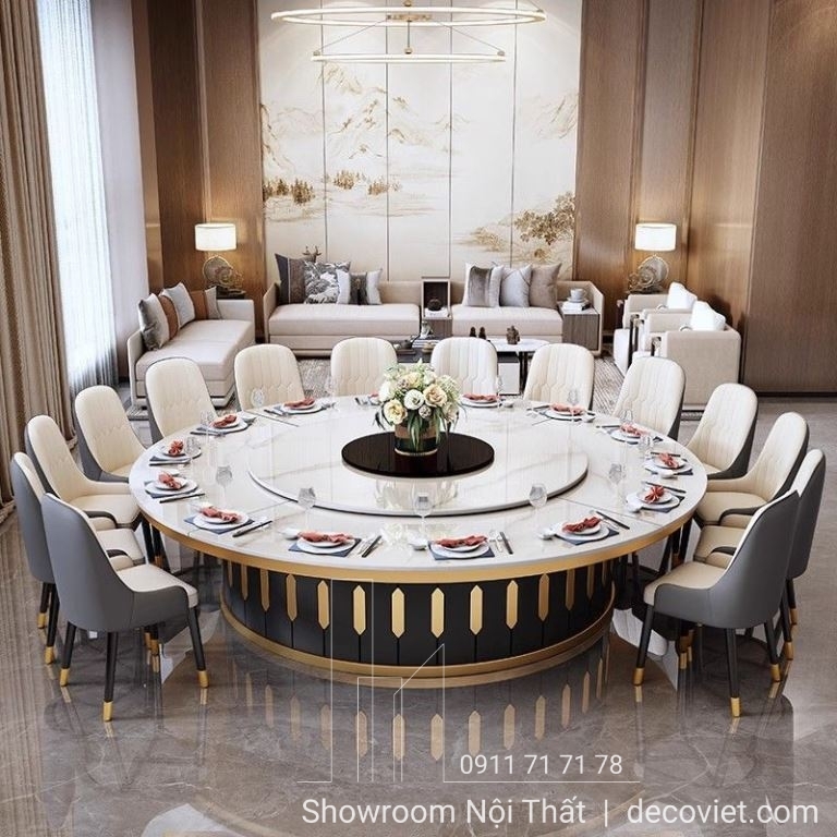 Với hơn 10 năm kinh nghiệm trong lĩnh vực nội thất cao cấp, DecoViet luôn mang đến những bàn ăn tròn lớn 20 ghế cao cấp chất lượng, sang trọng và tinh tế. Mỗi thiết kế đều chú trọng đến thẩm mỹ, độ bền và công năng, giúp không gian sống hay phòng ăn nhà hàng của bạn trở nên đẳng cấp và tiện nghi hơn bao giờ hết.