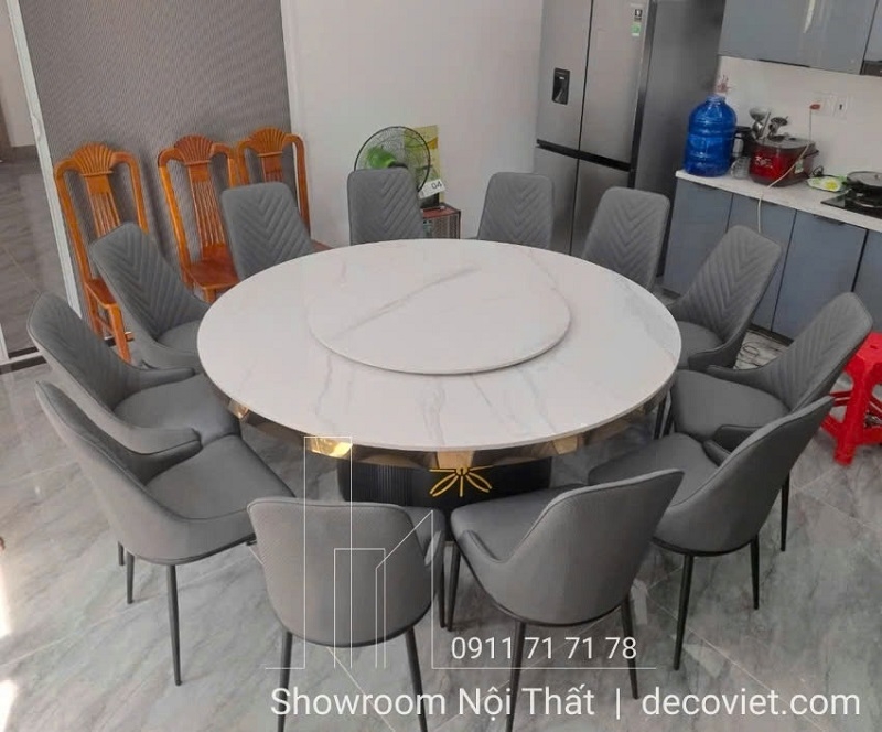 Bàn Tròn Mặt Đá Mâm Xoay 12 Ghế 2073S