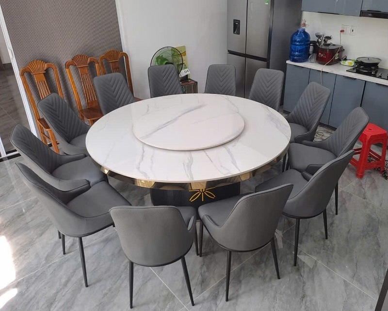 Bạn đang tìm kiếm một bộ bàn ăn dành cho 12 người lý tưởng cho không gian bếp ấm cúng, nơi cả gia đình có thể sum vầy bên nhau? Bàn Tròn Mặt Đá Mâm Xoay 12 Ghế 2073S với mặt đá cấp và ghế bọc nệm êm ái mang đến sự thoải mái, vừa sang trọng, vừa phù hợp cho gia đình đông người. Với thiết kế xoay tiện lợi và mức giá hợp lý, bộ bàn tròn 12 ghế mặt đá này chính là lựa chọn hoàn hảo để mỗi bữa ăn trở thành khoảnh khắc quây quần đáng nhớ.