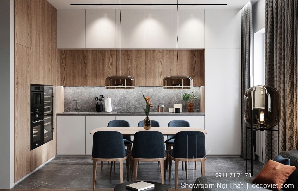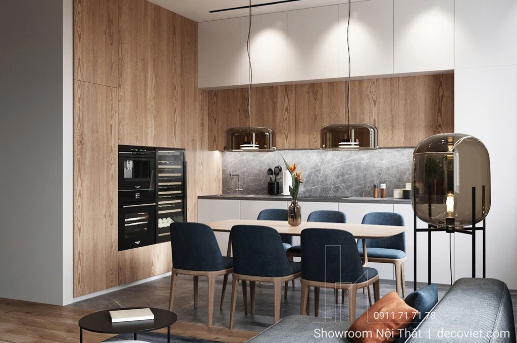 Nội thất thông minh là lựa chọn lý tưởng cho các căn hộ hiện đại, đặc biệt là những không gian nhỏ. Bàn ăn mở rộng, ghế gấp gọn hoặc tủ bếp đa năng không chỉ giúp tiết kiệm diện tích mà còn tăng tính tiện nghi.