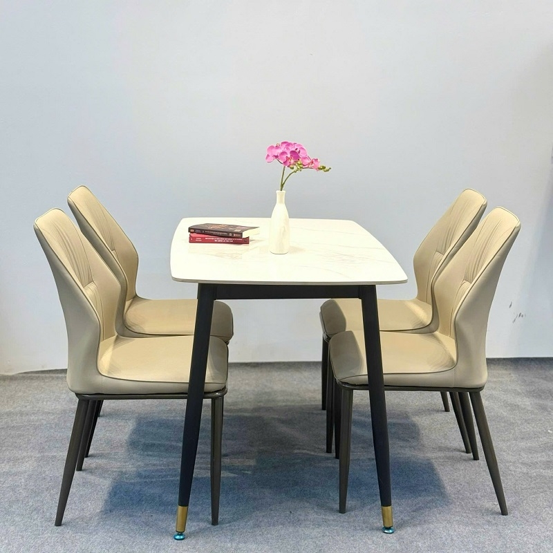 Không cần quá nhiều chi tiết cầu kì, một bộ bàn ăn đẹp nhưng tinh tế như Bộ Bàn Ăn 4 Ghế 1m2 Giá Rẻ 2657S cũng đủ để biến góc bếp thành nơi sum vầy ấm cúng. Với thiết kế tối giản, mặt đá Ceramic sáng bóng và gam màu trang nhã, bộ bàn ăn 4 ghế giá rẻ này mang đến vẻ hiện đại, thanh lịch mà vẫn phù hợp với những không gian sống có diện tích vừa phải. Lý tưởng cho các cặp vợ chồng trẻ, gia đình nhỏ hay căn hộ chung cư cần sự gọn gàng và tiện nghi mỗi ngày.