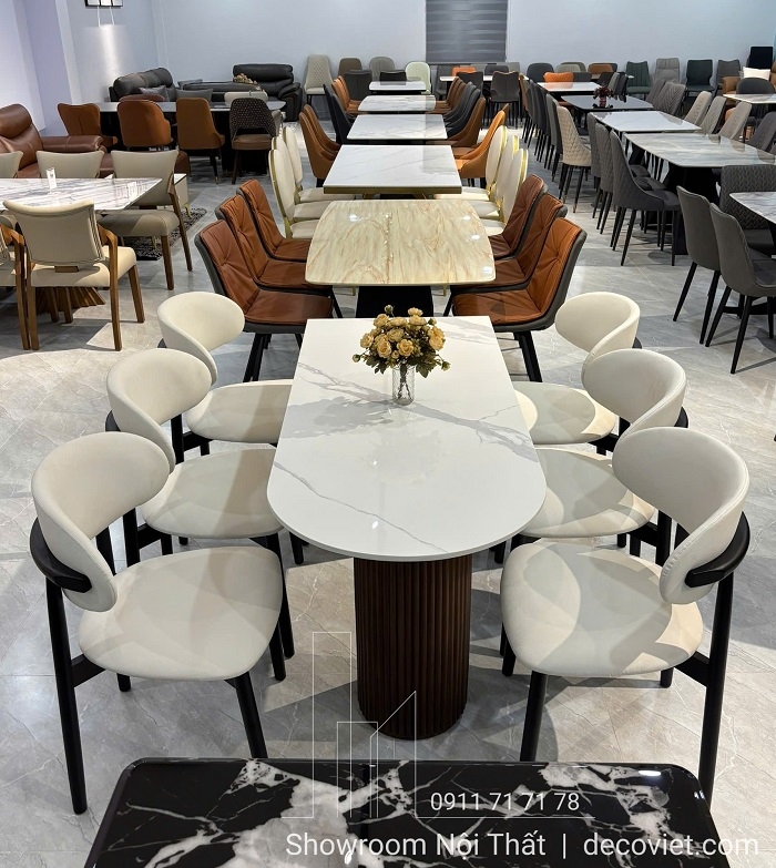 Một không gian bếp đẹp luôn bắt đầu từ bộ bàn ghế ăn hài hòa và tiện nghi. Bộ Bàn Ăn 6 Ghế Đẹp 2551S tại Nhà Decor là sự kết hợp hoàn hảo giữa vẻ ngoài tinh tế và tính ứng dụng cao – từ mặt đá trắng bóng thanh lịch đến thiết kế bo cong nửa vòng tròn mềm mại, an toàn và sang trọng. Mỗi chi tiết trong bộ sản phẩm bàn ghế ăn như được “đo ni đóng giày” cho những ai yêu thích nội thất hiện đại, thanh thoát nhưng vẫn đầy ấm cúng và gắn kết.