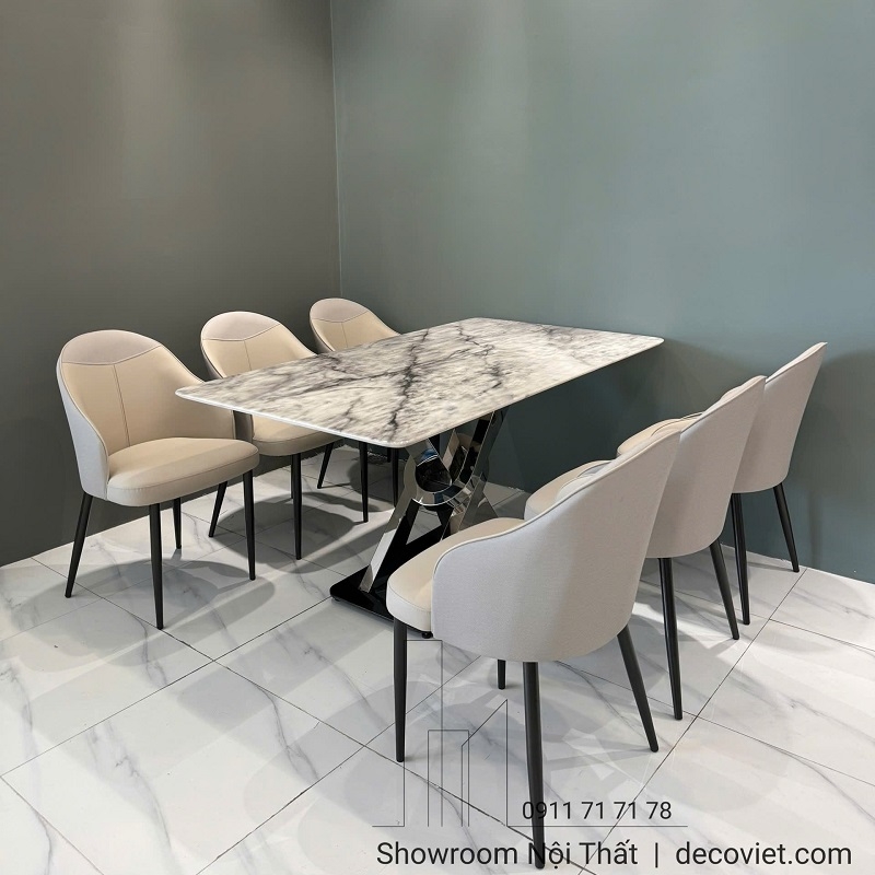 Không gian phòng ăn bừng sáng với sự xuất hiện của Bộ Bàn Ăn 6 Ghế Nhập Khẩu 2711S. Đường nét thanh thoát, mặt bàn đá vân mây cuốn hút ngay từ cái nhìn đầu tiên, mang đến cảm giác hiện đại, sang trọng mà khó mẫu nội thất nào có thể sánh kịp.