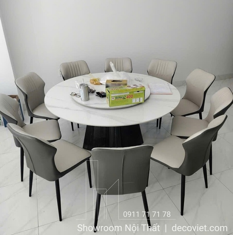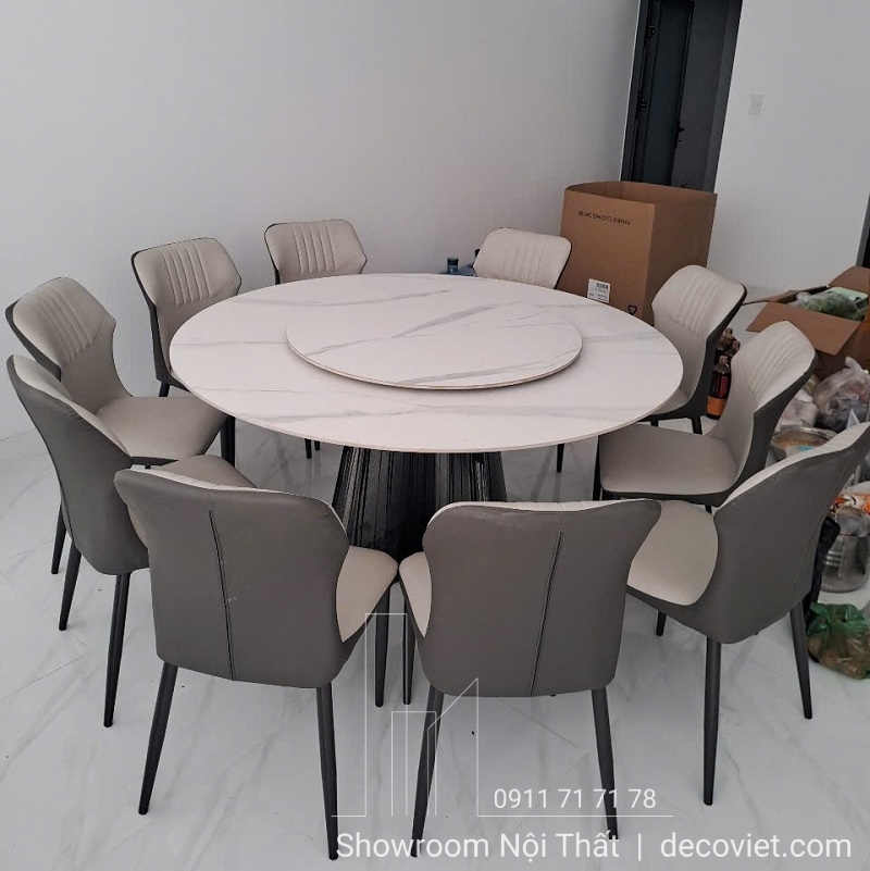 Một bữa cơm gia đình trọn vẹn không chỉ nằm ở món ngon, mà còn đến từ không gian ngồi quây quần, gần gũi và thoải mái. Bộ bàn ăn tròn xoay 10 ghế tại Nhà Decor chính là lựa chọn lý tưởng để tạo nên điểm nhấn đầy tinh tế và ấm áp cho phòng ăn hiện đại.