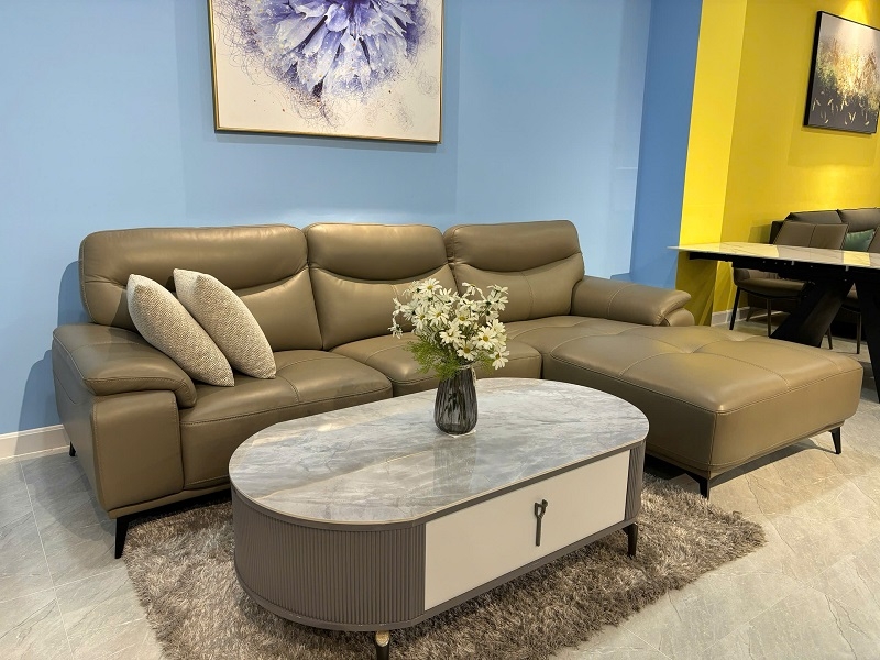Không chỉ chinh phục bằng sự thoải mái, mẫu ghế sofa da bò này còn gây ấn tượng với thiết kế góc chữ L mạnh mẽ và sang trọng. Kiểu dáng thông minh giúp tận dụng hiệu quả các góc tường, tối ưu hóa diện tích sử dụng – đặc biệt phù hợp với không gian mở của các căn hộ cao cấp, nhà phố hay biệt thự hiện đại.