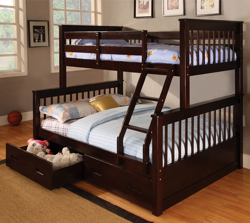 Giường Tầng Giá Rẻ 401T – Nâu được thiết kế đẹp với các họa tiết trang trí. Thiết kế tối ưu để tiết kiệm diện tích phòng ngủ, sử dụng cho cả trẻ em và người lớn. Ưu điểm lớn của loại giường này là rộng rãi, dùng cho 2-3 người cả trẻ em và người lớn với 2 giường, tầng trên rộng 1m4, tầng dưới rộng 1m. Phía dưới tầng 1 là các hộc kéo dùng để chứa đồ, cầu thang chắc chắn.