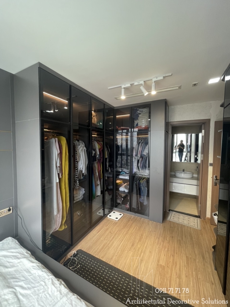 Sử dụng tủ quần áo cánh kính giúp không gian đẹp sang trọng và ấm cúng.