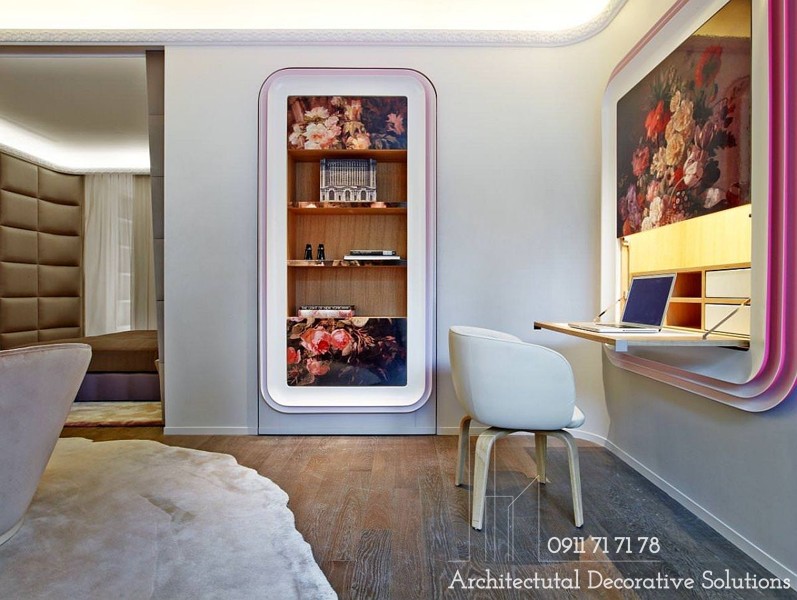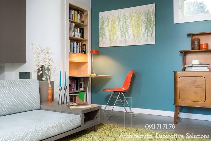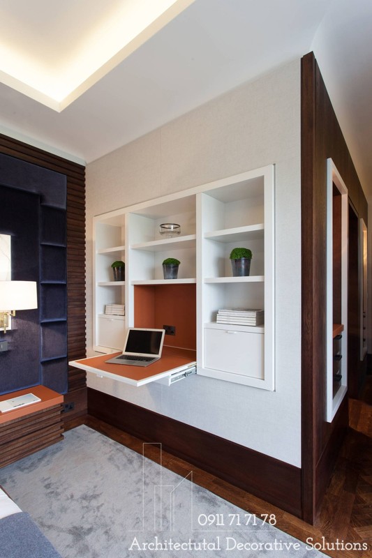 3. Bàn làm việc trượt ra khi cần và có thể đặt trở lại vào kệ là một lựa chọn thông minh giúp tiết kiệm không gian.