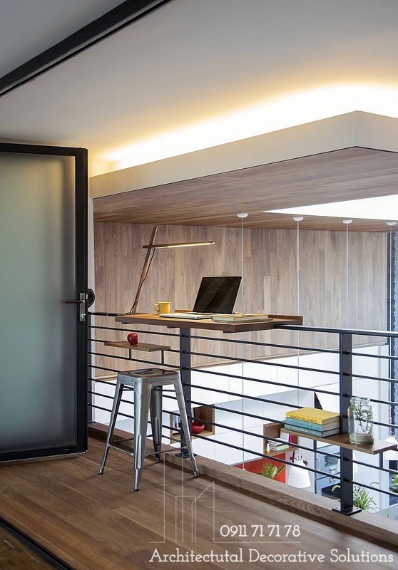 2. Thiết kế văn phòng tại nhà thông minh ở khu vực cầu thang với bàn gấp.