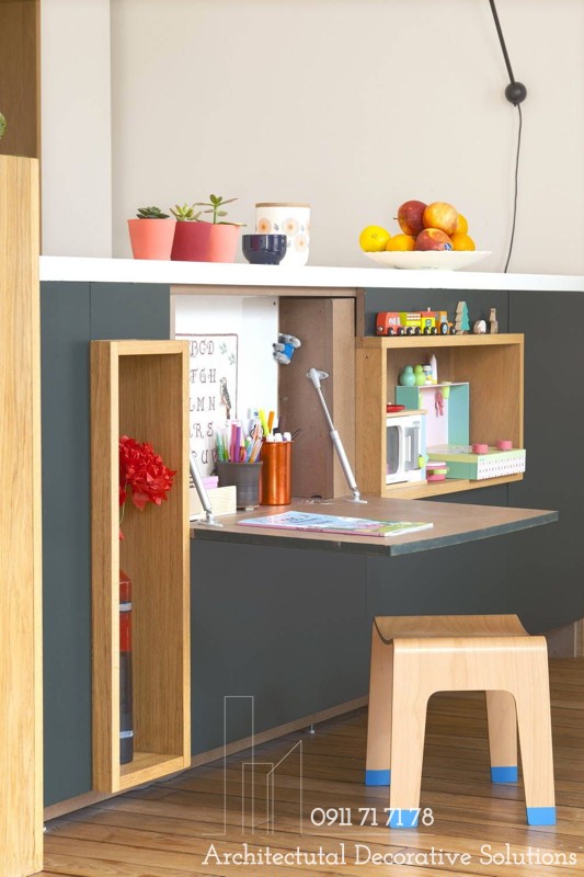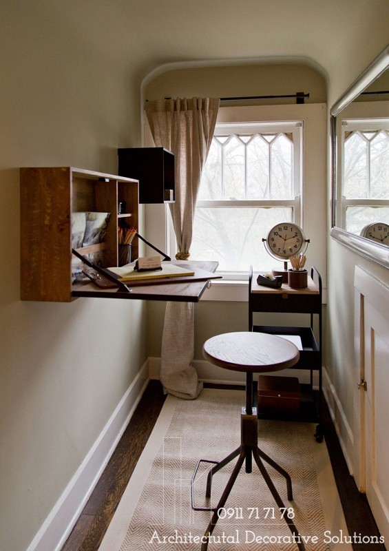 Bàn gấp hoặc bàn làm việc chỉ cần gập lại có thể sắp xếp khu làm việc tại nhà ở hành lang, phòng ngủ, thậm chí là không gian bị lãng quên trong nhà bếp.
