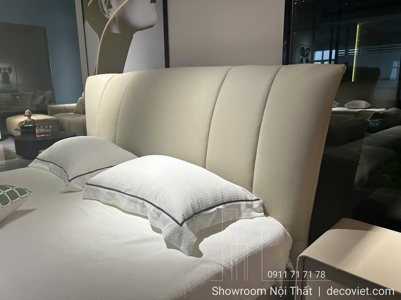 Tổng thể giường ngủ theo phong cách hiện đại tối giản, phù hợp với mọi không gian – từ căn hộ trẻ trung đến phòng ngủ biệt thự sang trọng. Bề mặt bọc da cao cấp mịn màng, không thấm bụi, dễ lau chùi, mang đến cảm giác sạch sẽ và bền màu theo thời gian.