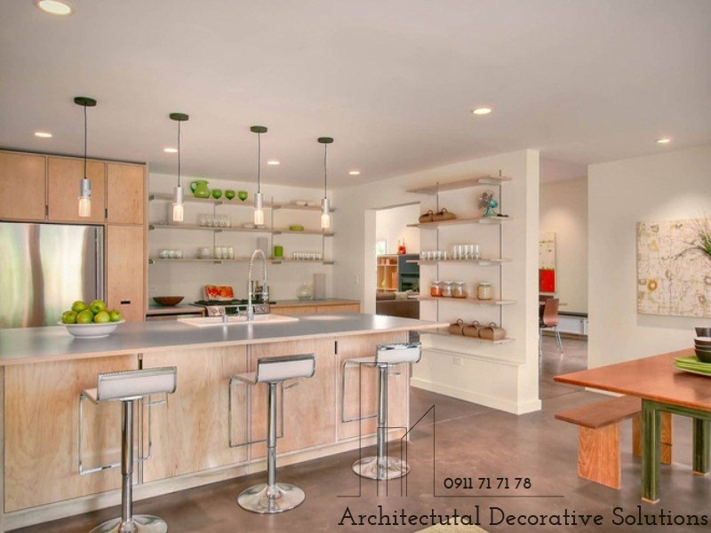 13. Có vẻ nhữ những chiếc kệ mở có thiết kế sâu như thế này tạo cảm giác an toàn hơn khi lưu trữ đồ vật trong mẫu bếp hiện đại này.
