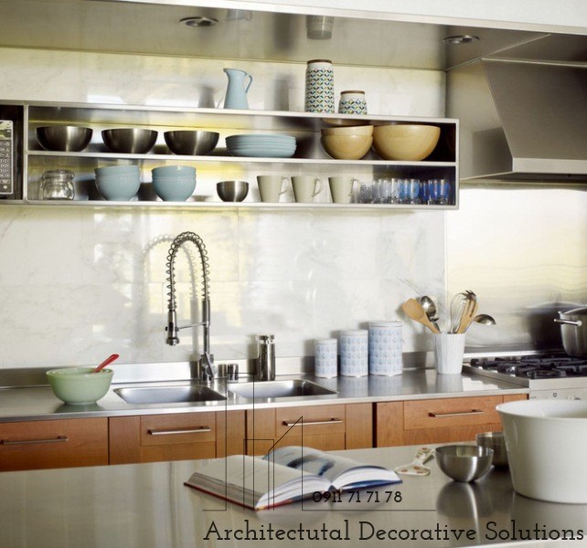 15. Chất liệu thép không gỉ, không thấm nước, không bám bụi, dễ dàng lau chùi là chất liệu thích hợp làm kệ trong nhà bếp hiện đại của mỗi gia đình.
