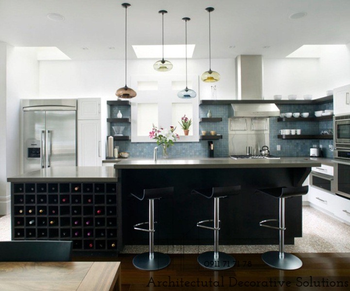 2. Với cách sắp xếp thông minh, ngăn nắp, những chiếc kệ mở đã tạo ra một góc trưng bày rượu đẹp xuất sắc trong phòng bếp hiện đại này.