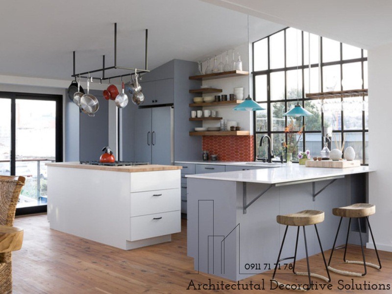12. Những chiếc giá đỡ bên trong nhà bếp hiện đại với màu sắc tươi sáng và kiểu dáng đơn giản dễ dàng lau chùi, dọn dẹp thường xuyên.