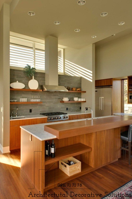 16. Không chỉ dùng để lưu trữ đồ nội thất nhà bếp đẹp như cốc, chén đĩa mà kệ mở còn là nơi bạn dùng trưng bày những tác phẩm nghệ thuật làm tăng sức hút bên trong phòng bếp hiện đại.