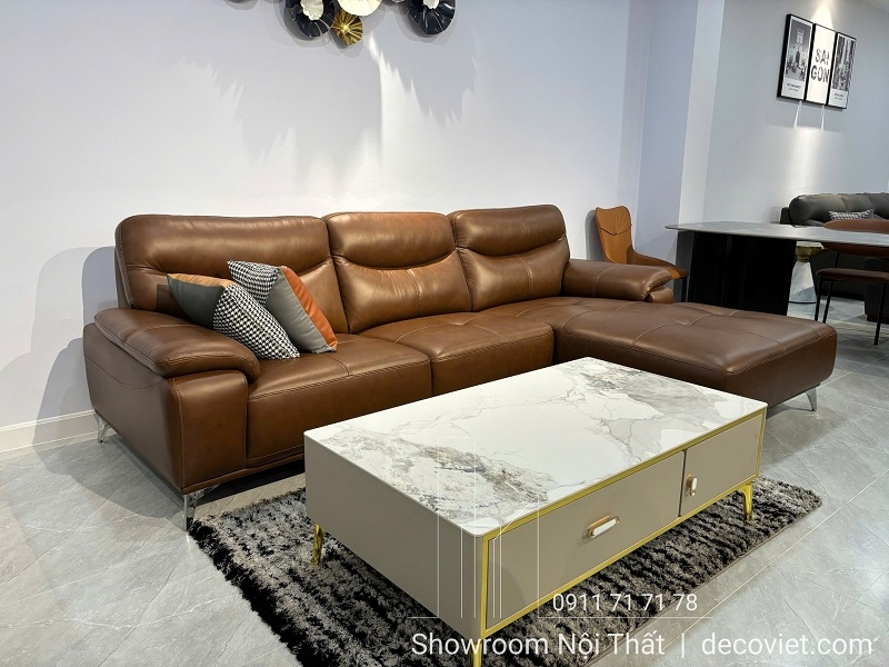 Không chỉ chinh phục bằng sự thoải mái, mẫu ghế sofa da bò này còn gây ấn tượng với thiết kế góc chữ L mạnh mẽ và sang trọng. Kiểu dáng thông minh giúp tận dụng hiệu quả các góc tường, tối ưu hóa diện tích sử dụng – đặc biệt phù hợp với không gian mở của các căn hộ cao cấp, nhà phố hay biệt thự hiện đại.