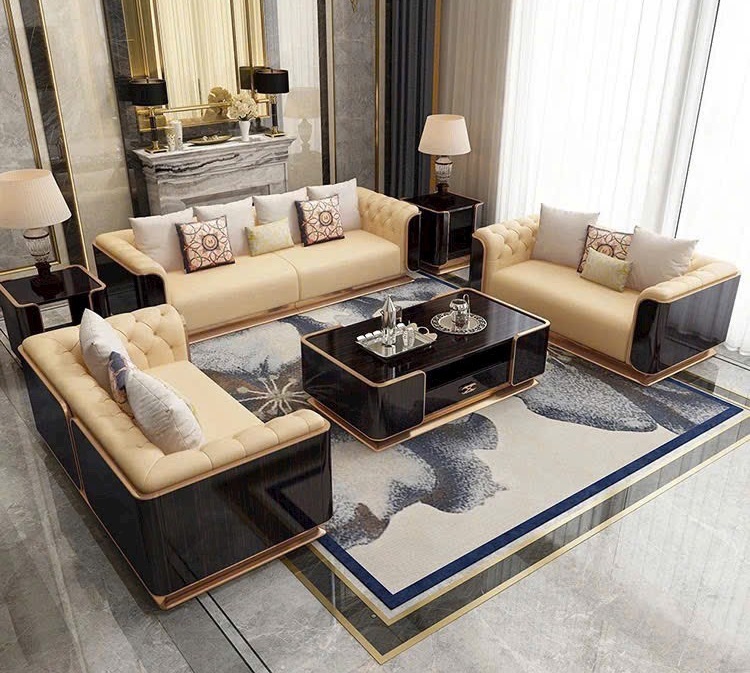 Mẫu sofa da thật này còn là điểm nhấn ấn tượng cho phòng khách bởi chúng được điểm tô hoàn hảo trên từng chi tiết nhỏ, các đường chỉ may thẳng tắp, chỉnh chu, từng bộ phận đều rất được chăm chút nên đem lại sự hoàn hảo và sang trọng.