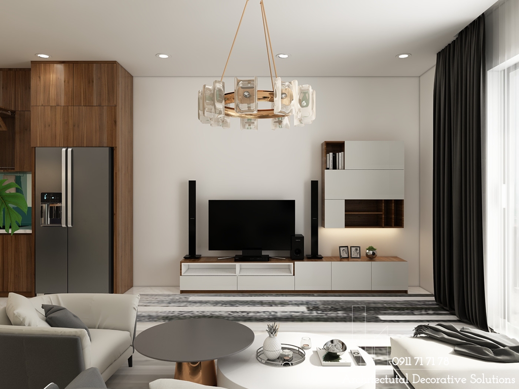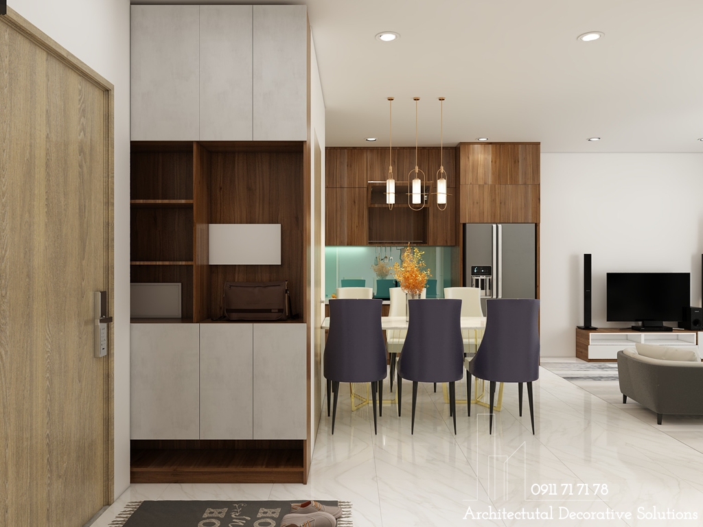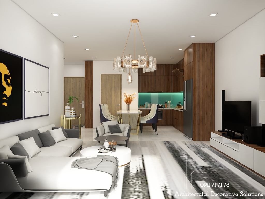 Điểm nhấn cho thiết kế nội thất căn hộ chung cư 2 phòng ngủ này đó là ánh sáng và màu sắc. Tận dụng lợi thế vị trí, các căn phòng đều được thiết kế mở, mang đến khả năng chiếu sáng tự nhiên thoáng mát và rộng rãi. Việc bố trí nội thất khoa học, sáng tạo mang đến cho gia chủ một không gian sinh hoạt động đầy sức sống nhưng vẫn giữ được nét đẹp sang trọng và hiện đại.