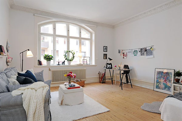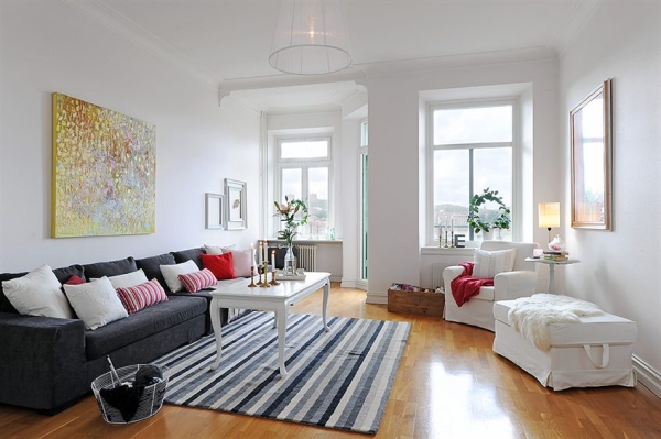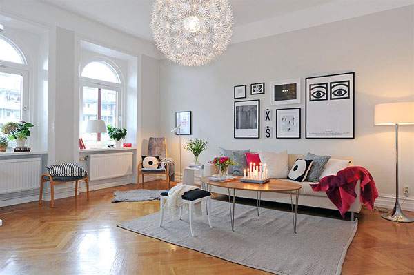 Những món đồ nội thất lớn sẽ không phải là vấn đề quan trọng nữa, vì phòng khách mang phong cách Scandinavia đều sử dụng những cửa sổ lớn để tận dụng ánh sáng mặt trời, và những bình hoa rực rỡ mang lại sức sống cho phòng khách nhà bạn.