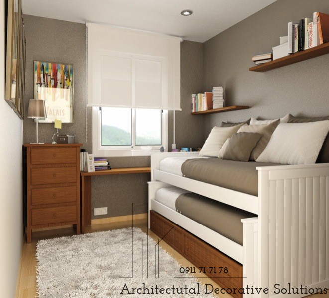 Thiết kế phòng ngủ diện tích nhỏ nên tận dụng tối đa giường tầng nếu gia đình bạn đã có 2 con nhỏ. Những chiếc giường tầng hiện đại có thiết kế nhỏ gọn và cực thuận tiện để con bạn ngủ nghỉ, thư giãn.